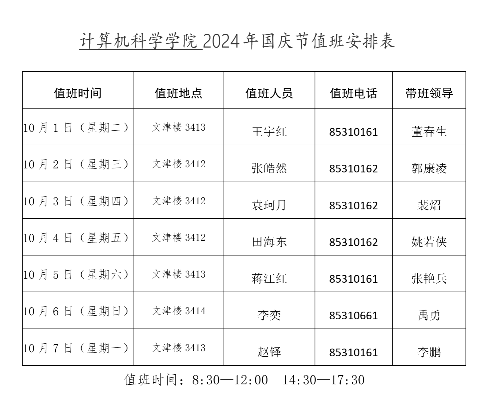 yL23411永利官网登录2024年国庆假期值班安排