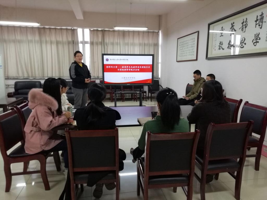 学院党委副书记袁冰老师总结道,本次获奖学生先进事迹宣讲报告会,通过充分发掘获奖学生身上所体现出的优秀品质,以朋辈的力量激励了计科学子自觉学习典型、努力争做典型,充分发挥了榜样可敬、可亲、可信、可学的优势,在学生之中形成了示范引领作用,推动了优良校风学风的形成。