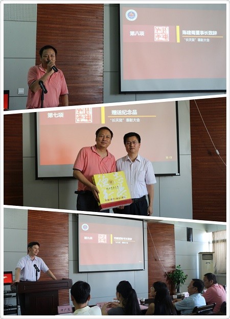 会上,王小明院长代表学院向长天公司表达了诚挚的谢意,同时希望获奖的老师、同学志存高远,心怀感恩,并希望和长天公司进一步的合作。胡波书记详细介绍了“长天奖”的设立情况,并对企业在永利官网设立的第一个奖学金的重要意义做了重点说明。学院副书记袁冰介绍了此次“长天奖”评选情况并宣读表彰决定。与会嘉宾向获得首届“长天奖”的教师、学生和团体颁发了奖金和证书。获奖学生代表汤星表达了对学校和长天感激之情,结合自身成长经历,表示将刻苦努力、奋发进取、不断拼搏、积极奉献,以实际行动回报学校和社会。随后,胡波书记向长天集团赠送纪念品。陈建蜀董事长在致辞中对yL23411永利官网登录在“长天奖”的设立和评选过程中的工作给予高度评价,并表示长天公司将继续和yL23411永利官网登录加强合作,同时也希望同学们珍惜在校时间,积极进取,取得更好的成绩。最后,我校教育基金会秘书长、学校办公室副主任刘建斌从yL23411永利官网登录的人才培养和学科发展的角度阐述了“长天奖”设立的重要意义,希望获奖学生“饮水思源,获奖思进,传递爱心,回报社会”。