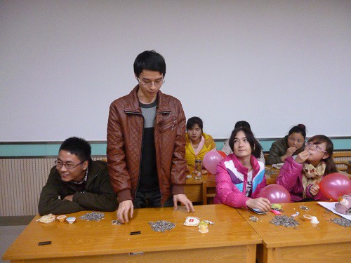 接着,团支书带领大家观看了相关视频,对十八大的内容进行了回顾。看完视频后,大家对视频内容进行了积极的讨论,很多同学谈了自己的想法和感受,同学们表示要将自己的爱国热情与“中国梦,师大梦”结合起来,努力学习,珍惜师大优良的学习环境,在自己大学期间充分利用学校的资源,提高自身的综合素质。本环节使同学们既重温了“中国梦”又燃起了浓厚的爱国情怀。而今的爱国情是由一点一滴的团队合作精神组成的,为了进一步锻炼大家的团队意识,团支书和班委为大家精心准备了一系列的素质拓展游戏。